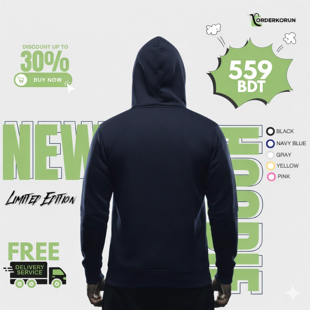 স্টাইলিশ ব্ল্যাক হুডি – সুপার সফট ও আরামদায়ক (Black Hoodie)