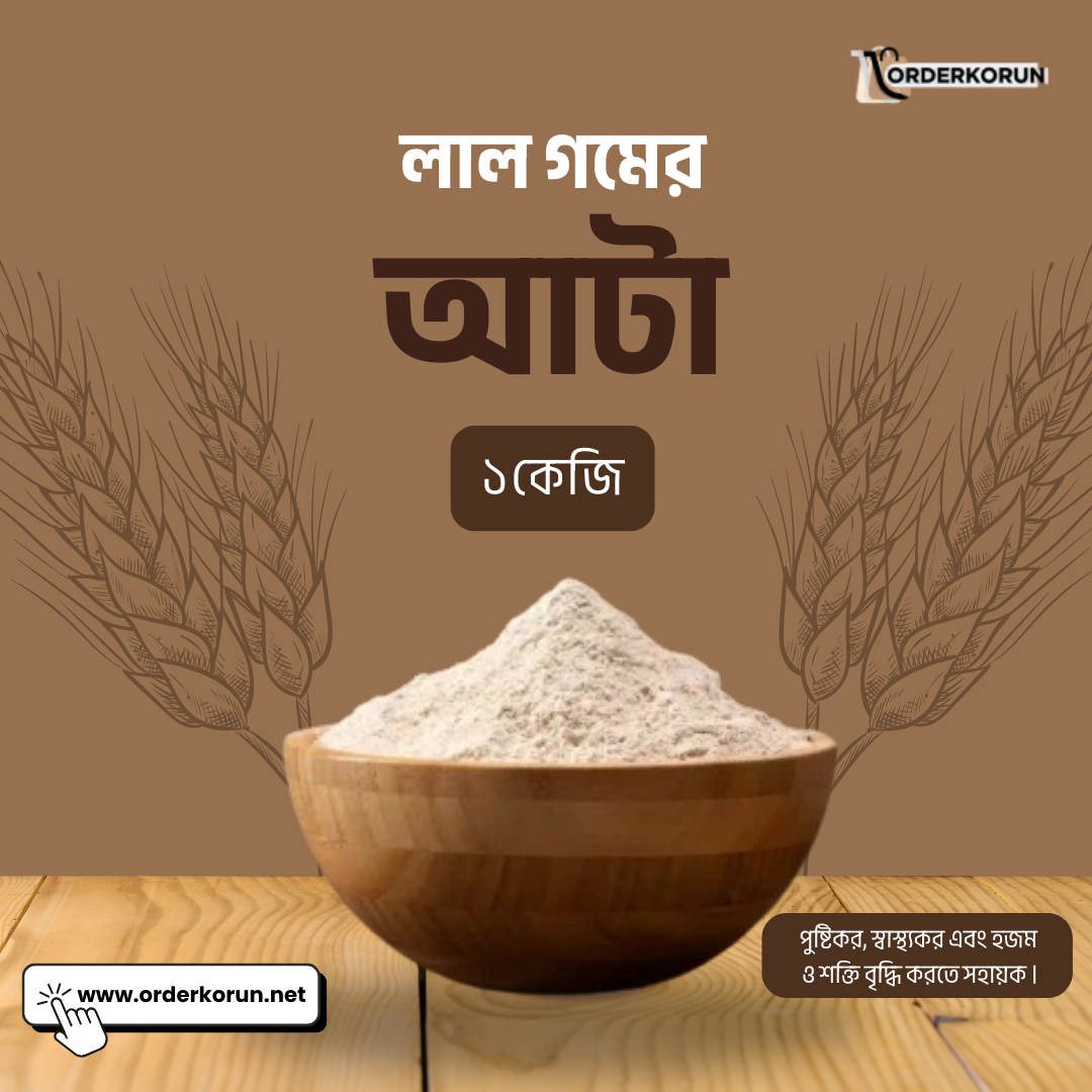 আপনাদের জন্য নিয়ে এসেছি ১০০% খাঁটি লাল গমের আটা, যা সম্পূর্ণ ঘরোয়া পদ্ধতিতে প্রস্তুত এবং স্বাস্থ্যসম্মত।