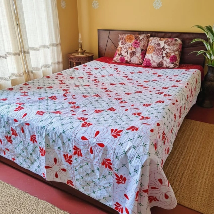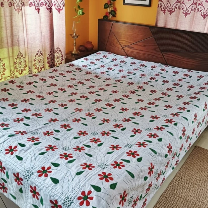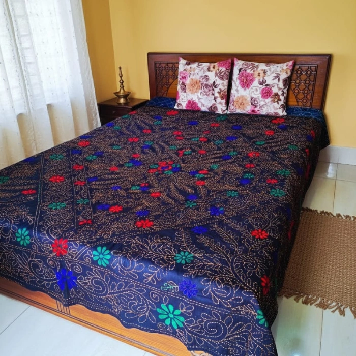 আপনার শোবার ঘরকে দিন নতুন এক রাজকীয় লুক।আমাদের Premium নকশীকাঁথা তৈরি করা হয়েছে উন্নতমানের পিওর সফট কটন কাপড় দিয়ে, যা স্পর্শে নরম, ব্যবহারেও আরামদায়ক। দুই লেয়ারের মজবুত সেলাই ও মানসম্মত ফিনিশিংয়ের কারণে এটি সারাবছর ব্যবহারযোগ্য—গরমে হালকা, শীতে আরামদায়ক। দৈনন্দিন ব্যবহার থেকে শুরু করে গেস্ট রুম কিংবা উপহার—সব ক্ষেত্রেই পারফেক্ট চয়েস।